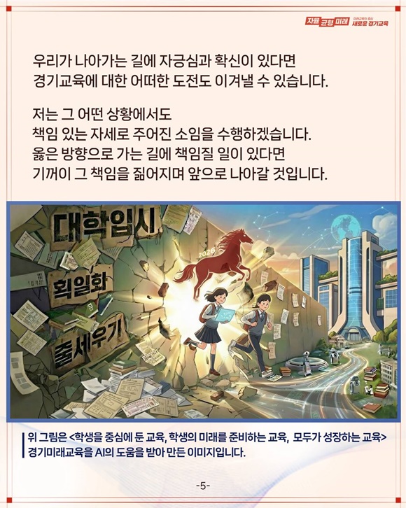 ÀÓ ±³À°°¨Àº ¡°2026³â º´¿À³â »õÇØ¸¦ ¸Â¾Æ °æ±â±³À°°¡Á·°ú µµ¹Î ¸ðµÎ°¡ ºÓÀº ¸»ÀÇ ±â¿îó·³ ÈûÂ÷°Ô Ãâ¹ßÇÏ±æ ¹Ù¶õ´Ù¡±¸ç ¡°±×µ¿¾È ÇÔ²² ¸¸µé¾î ¿Â °æ±â±³À°ÀÇ ¼º°ú¸¦ ¹ÙÅÁÀ¸·Î ¹Ì·¡±³À°À» ´õ¿í ´Ü´ÜÈ÷ ´ÙÁ® ³ª°¡°Ú´Ù¡±°í °Á¶Çß´Ù.