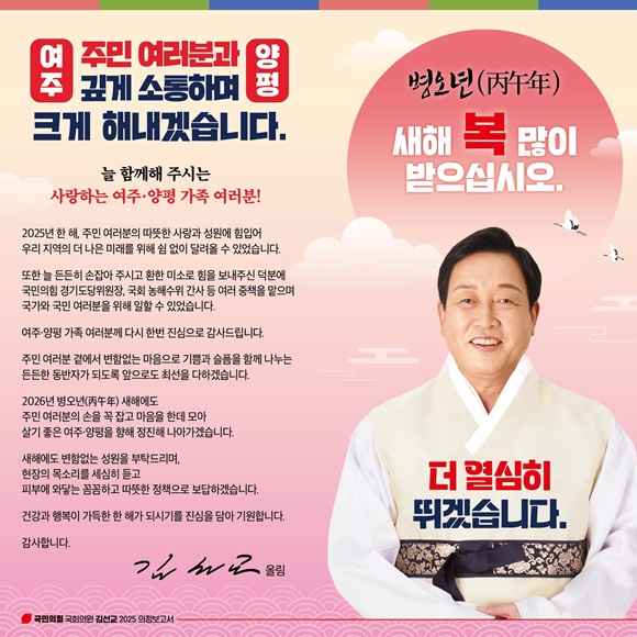 ÇÑÆí ±è¼±±³ ÀÇ¿øÀº ¿À´Â 10ÀÏ(Åä) ¿ÀÈÄ 2½Ã ¹°¸¼Àº ¾çÆòüÀ°°ü¿¡¼ ¡®2026³â ½Å³â¿¬¼ö ¹× ÀÇÁ¤º¸°íȸ¡¯¸¦ °³ÃÖÇϰí Áö³ 1³â 6°³¿ù°£ÀÇ Ä¡¿Çß´ø ÀÇÁ¤È°µ¿ ¼º°ú¸¦ Áֹε鿡°Ô »ó¼¼È÷ º¸°íÇÒ ¿¹Á¤ÀÌ´Ù.
