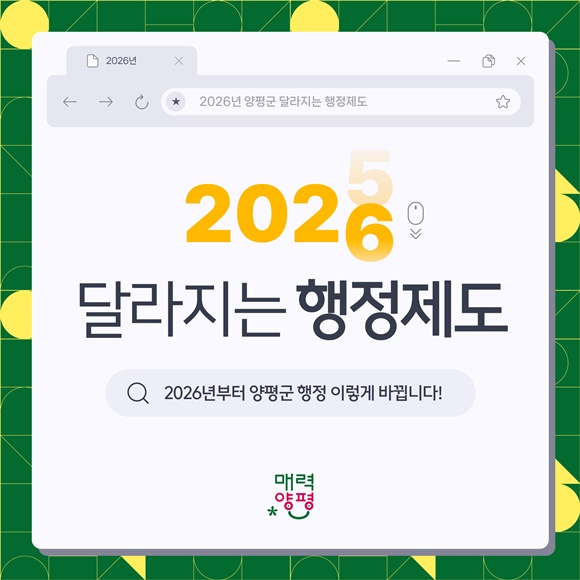 ÇÑÆí, ¡®2026³â ¾çÆò±º ´Þ¶óÁö´Â ÇàÁ¤Á¦µµ¡¯¿¡ ´ëÇÑ ÀÚ¼¼ÇÑ ³»¿ëÀº ¾çÆò±º °ø½Ä ºí·Î±×(https://m.blog.naver.com/yangpyeong63/224149019369)¸¦ ÅëÇØ È®ÀÎÇÒ ¼ö ÀÖ´Ù.