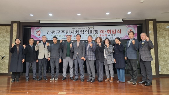 ¾çÆò±º ÁÖ¹ÎÀÚÄ¡ÇùÀÇȸ´Â Áö³ 4ÀÏ ¾çÆò±º Æò»ýÇнÀ¼¾ÅÍ¿¡¼ Á¦13´ë¡¤Á¦14´ë ÁÖ¹ÎÀÚÄ¡ÇùÀÇȸÀå ÀÌ¡¤ÃëÀÓ½ÄÀ» °³ÃÖÇß´Ù. À̳¯ Çà»ç¿¡´Â ¿À±¤¼® ºÎ±º¼ö¸¦ ºñ·ÔÇØ ¿ÀÇýÀÚ ¾çÆò±ºÀÇȸ ÀÇÀå, ¹Ú¸í¼÷ µµÀÇ¿ø, Áö¹ÎÈñ ºÎÀÇÀå, ¼ÛÁø¿í ±ºÀÇ¿ø, °¢±Þ ±â°ü¡¤´ÜüÀå°ú À¾¡¤¸é ÁÖ¹ÎÀÚÄ¡À§¿øÀå µî 100¿© ¸íÀÌ Âü¼®ÇØ ÇöÀåÀ» °¡µæ ¸Þ¿ü´Ù.