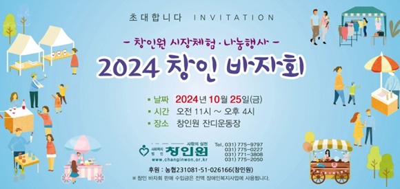 ¾çÆò âÀοø(ÀÌ»çÀå À̰æÇÐ) Àå¾ÖÀÎ °¡Á·µéÀÇ ½ÃÀåüÇè°ú ÇÔ²² Áö¿ª»çȸ¿Í ÇÔ²² ÇÏ´Â ³ª´®ÀÇ Çà»ç¸¦ ½ÇõÇÏ´Â ¡®2024 âÀÎ ¹ÙÀÚȸ¡¯°¡ ¿À´Â 10¿ù 25ÀÏ(±Ý) ¿ÀÀü 11½ÃºÎÅÍ ¿ÀÈÄ 4½Ã±îÁö âÀοø Àܵð¿îµ¿Àå¿¡¼ °³ÃֵȴÙ.