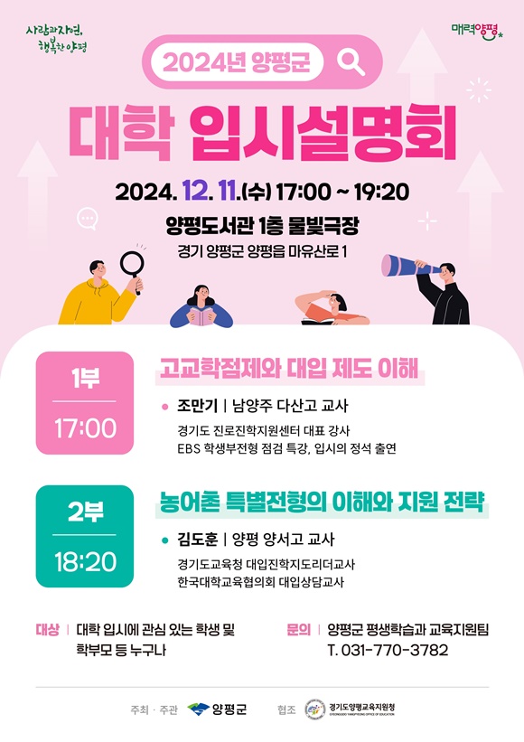 À̹ø ÀԽü³¸íȸ´Â º°µµÀÇ »çÀü½Åû ¾øÀÌ ´©±¸³ª Âü¼® °¡´ÉÇϸç, ¾à 2½Ã°£¿¡ °ÉÃÄ º¯È­ÇÏ´Â ÀÔ½ÃÁ¦µµ¿¡ ´ëºñÇÑ ÇнÀ ¹æ¹ý°ú ´ëÇÐ Áö¿ø Àü·«À» ¼³¸íÇÒ ¿¹Á¤ÀÌ´Ù. ¼³¸íȸ °³ÃÖ¿¡ µû¸¥ ±âŸ ÀÚ¼¼ÇÑ »çÇ×Àº Æò»ýÇнÀ°ú ±³À°Áö¿øÆÀ(¢Ï031-770-3782)À¸·Î ¹®ÀÇÇÏ¸é µÈ´Ù.