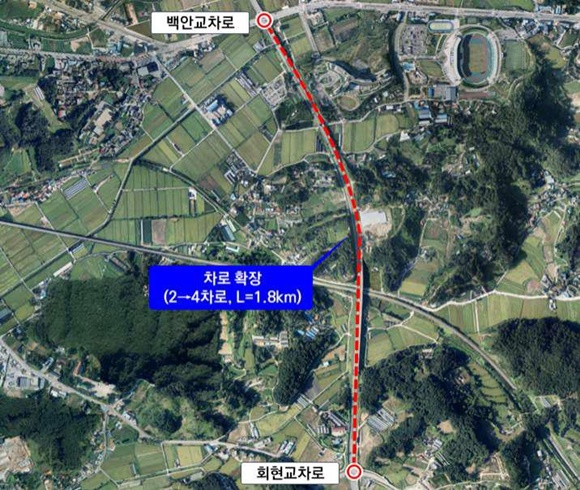 À̹ø ¡®¹é¾È±³Â÷·Î~ȸÇö±³Â÷·Î µµ·ÎÈ®Àå°ø»ç(¿¬Àå 1.8km)¡¯´Â ±âÁ¸ ¾ç¹æÇâ 2Â÷·Î¿¡¼ 4Â÷·Î·Î È®ÀåÇÏ´Â »ç¾÷À¸·Î, ÃÑ»ç¾÷ºñ ¾à 19¾ï ¿øÀÌ ÅõÀԵƴÙ. »ç¾÷Àº Áö³ÇØ 3¿ùºÎÅÍ 8¿ù±îÁö ½Ç½Ã¼³°è¸¦ ¸¶ÃÆÀ¸¸ç, Áö³ ÇØ 11¿ù Âø°øÇÏ¿© ¿ÃÇØ 11¿ù Áذø ¿¹Á¤ÀÌ´Ù.