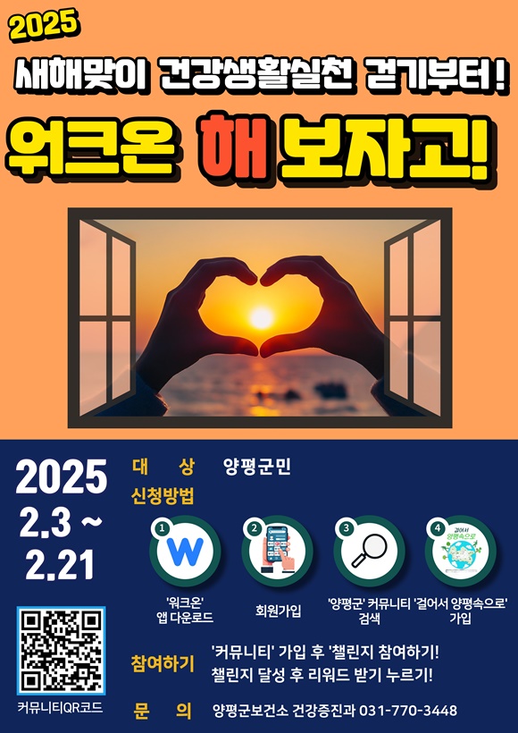 ÇÑÆí °Ç°­ °È±â 縰Áö Âü¿© °ü·Ã ¹®ÀÇ´Â ¾çÆò±º º¸°Ç¼Ò °Ç°­±âȹÆÀ(031-770-3448)À¸·Î ÇÏ¸é µÈ´Ù.
