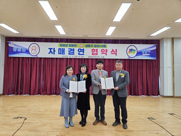 ¾çÆò±º ¾çµ¿¸é(¸éÀå Á¤Ã¢¾÷)°ú ¾çµ¿¸é ÁÖ¹ÎÀÚÄ¡À§¿øÈ¸(À§¿øÀå Àå¹Ì°æ)´Â 7ÀÏ ¾çµ¿¹®È¼¾ÅÍ¿¡¼ ¼ºµ¿±¸ ±ÝÈ£4°¡µ¿(µ¿Àå ±èÆò¼±), ±ÝÈ£4°¡µ¿ ÁÖ¹ÎÀÚġȸ(ȸÀå ¼Û¿µÁÖ)¿Í Áö¿ª °øµ¿Ã¼ ¹ßÀü°ú ÁÖ¹ÎÀÇ »îÀÇ Áú Çâ»óÀ» À§ÇÑ ÀڸŰῬ Çù¾àÀ» ü°áÇß´Ù.