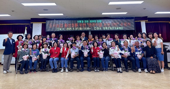 Á¶±Ù¼ö ¾çÆò±º ³ó¾÷±â¼ú¼¾ÅÍ ¼ÒÀåÀº ¡°¹Ý·Á ½Ä¹° Àü¹®°¡¹ÝÀº µµ½Ã³ó¾÷ÀÇ ±â¹ÝÀ» ³ÐÈ÷°í »ýȰ¿ø¿¹¸¦ Áö¿ª»çȸ¿¡ È®»êÇÏ´Â µ¥ Áß¿äÇÑ ¿ªÇÒÀ» ÇÒ °Í¡±À̶ó¸ç ¡°¾ÕÀ¸·Îµµ ´Ù¾çÇÑ µµ½Ã³ó¾÷ Àü¹®°¡ ¾ç¼º°úÁ¤À» Áö¼ÓÀûÀ¸·Î ÃßÁøÇØ ³ª°¡°Ú´Ù¡±°í ¹àÇû´Ù.