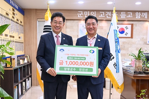 ÀüÁø¼± ¾çÆò±º¼ö´Â Áö³ 20ÀÏ, ÃæºÏ ¿µµ¿±º¿¡ °íÇâ»ç¶û±âºÎ±Ý 100¸¸ ¿øÀ» ±âŹÇÏ¸ç ¾ç ÁöÀÚü °£ »ó»ý Çù·ÂÀÇ ÀÇÁö¸¦ ´Ù½Ã Çѹø È®ÀÎÇß´Ù.