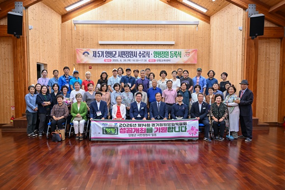 ¾çÆò±º(±º¼ö ÀüÁø¼±)Àº 6¿ù 26ÀÏ ½¬ÀÚÆÄÅ© »ê¸²±³À°¼¾ÅÍ¿¡¼ ¡®Á¦5±â ½Ã¹ÎÁ¤¿ø»ç ¼ö·á½Ä ¹× ¾çÆòÁ¤¿ø µî·Ï½Ä¡¯À» ¼ºÈ²¸®¿¡ °³ÃÖÇß´Ù°í ¹àÇû´Ù. À̹ø Çà»ç´Â ¾à 1½Ã°£ µ¿¾È ÁøÇàµÇ¾úÀ¸¸ç, ÀüÁø¼± ¾çÆò±º¼ö¸¦ ºñ·ÔÇØ ±º °ü°èÀÚ, ½Ã¹ÎÁ¤¿ø»ç ¼ö·á»ý 47¸í, ½Å±Ô Á¤¿øÁÖ ¹× °¡Á· µî 70¿© ¸íÀÌ Âü¼®ÇØ ÀÚ¸®¸¦ ºû³Â´Ù.