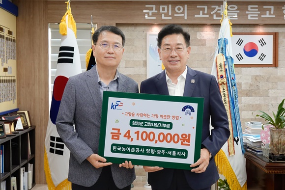 À̳¯ Çѱ¹³ó¾îÃ̰ø»ç ¼Ò¼Ó ÀÓÁ÷¿øµéÀº °íÇâ¿¡ ´ëÇÑ ¾ÖÁ¤°ú Áö¿ª »ó»ýÀÇ ¶æÀ» ´ã¾Æ ÃÑ 410¸¸ ¿øÀ» ¾çÆò±º¿¡ ±âºÎÇß´Ù. ÇØ´ç ±âºÎ±ÝÀº ¾çÆò±ºÀÇ ´Ù¾çÇÑ °øÀÍ»ç¾÷¿¡ Åõ¸íÇÏ°Ô È°¿ëµÉ ¿¹Á¤ÀÌ´Ù.