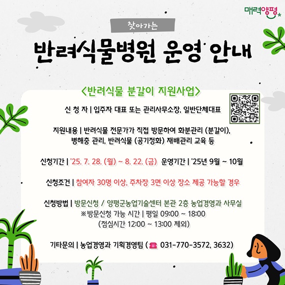 ¾çÆò±º(±º¼ö ÀüÁø¼±)Àº ¿À´Â 9¿ùºÎÅÍ 10¿ù±îÁö °øµ¿ÁÖÅà ÀÔÁֹΠ¹× ´Üü¸¦ ´ë»óÀ¸·Î ¡®Ã£¾Æ°¡´Â ¹Ý·Á ½Ä¹° º´¿ø¡¯ »ç¾÷À» ¿î¿µÇÑ´Ù°í ¹àÇû´Ù. ÀÌ »ç¾÷Àº ½Ç³»¿ø¿¹ Ȱ¼ºÈ­¿Í µµ½Ã³ó¾÷ È®»êÀ» ¸ñÀûÀ¸·Î, °¡Á¤À̳ª ÀÏÅÍ¿¡¼­ ±â¸£´Â ¹Ý·Á ½Ä¹°ÀÇ °Ç°­À» Á÷Á¢ ì°ÜÁÖ´Â ÇöÀå ¸ÂÃãÇü ±³À° ÇÁ·Î±×·¥ÀÌ´Ù.