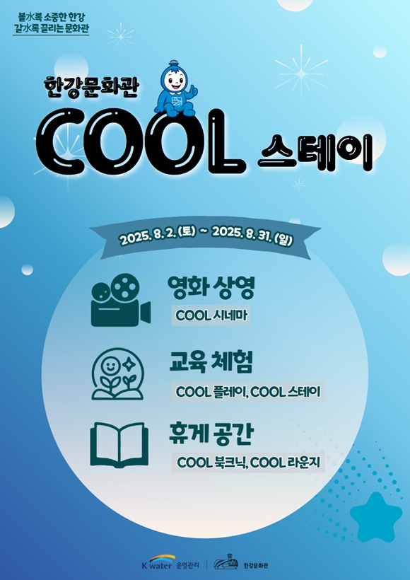 K-water ÇѰ­º¸°ü¸®´Ü°ú ÄÉÀÌ¿öÅͿ°ü¸® ÇѰ­¹®È­°üÀº ½Ã¹ÎµéÀÌ µµ½É ¼Ó ¼öº¯ °ø°£¿¡¼­ ¹«´õÀ§¸¦ ÇÇÇØ ¿©À¯·Ó°í ÄèÀûÇÑ ¿©¸§À» º¸³¾ ¼ö ÀÖµµ·Ï, ¿©¸§ Ưȭ ÇÁ·Î±×·¥ **¡®Cool Stay ÇѰ­¹®È­°ü¡¯**À» 8¿ù ÇÑ ´Þ°£ ¿î¿µÇÑ´Ù°í ¹àÇû´Ù.