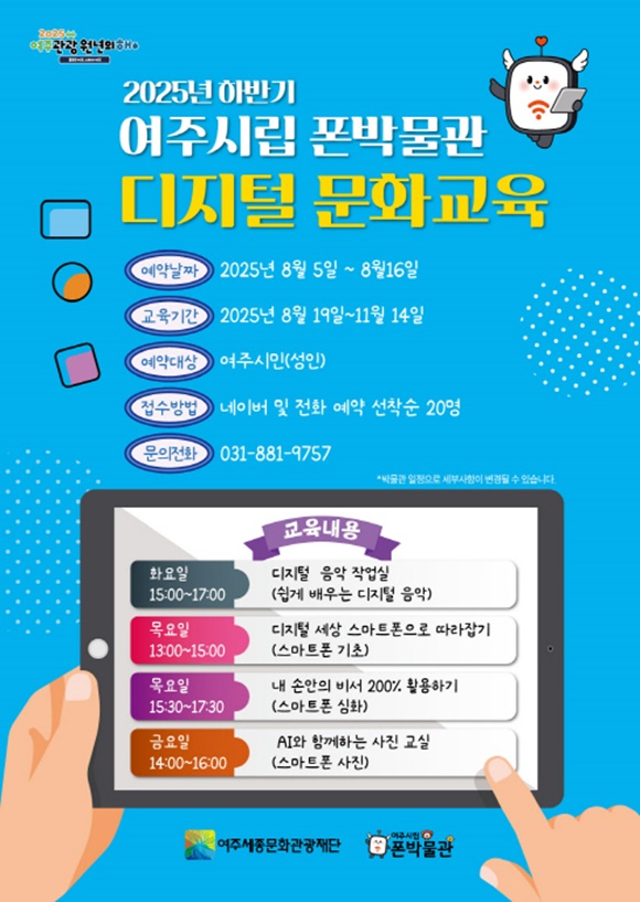 ¿©ÁÖ¼¼Á¾¹®È­°ü±¤Àç´Ü(ÀÌ»çÀå À̼ø¿­)Àº ¿À´Â 8¿ù 19ÀϺÎÅÍ 12ÁÖ°£, ¿©Áֽø³ Æù¹Ú¹°°ü¿¡¼­ ½Ã¹Î ´©±¸³ª Âü¿© °¡´ÉÇÑ ¡®2025 ÇϹݱ⠵ðÁöÅÐ ¹®È­±³À°¡¯À» ¿î¿µÇÑ´Ù°í ¹àÇû´Ù.