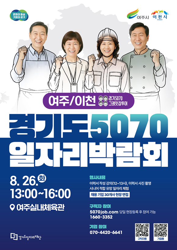 °æ±âµµ¿Í °æ±âµµÀÏÀÚ¸®Àç´ÜÀÌ 50~70¼¼ ÁßÀå³âÃþÀÇ ÀçÃë¾÷À» µ½±â À§ÇØ ¡®2025 °æ±âµµ 5070 ÀÏÀÚ¸®¹Ú¶÷ȸ in ¿©ÁÖ¡¤ÀÌõ¡¯À» ¿À´Â 8¿ù 26ÀÏ ¿©Áֽdz»Ã¼À°°ü¿¡¼ °³ÃÖÇÑ´Ù.