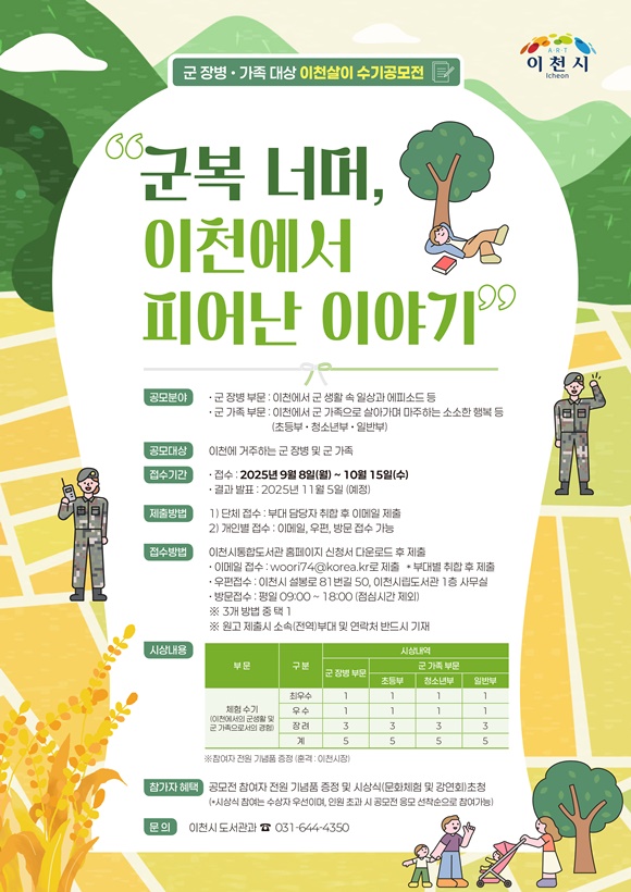 Á¢¼ö ±â°£Àº ¿À´Â 9¿ù 8ÀÏ(¿ù)ºÎÅÍ 10¿ù 15ÀÏ(¼ö)±îÁö´Ù. Âü°¡ Èñ¸ÁÀÚ´Â ½Åû¼¿Í ¿ø°í ÆÄÀÏÀ» À̸ÞÀÏÀ̳ª ¿ìÆíÀ¸·Î Á¦ÃâÇϰųª Á÷Á¢ µµ¼°üÀ» ¹æ¹®ÇØ ÀÀ¸ðÇÒ ¼ö ÀÖ´Ù. ¼¼ºÎ Çü½Ä°ú ºÐ·®Àº ÀÌõ½ÃÅëÇÕµµ¼°ü ´©¸®Áý¿¡¼ È®ÀÎÇÒ ¼ö ÀÖÀ¸¸ç, ±º À庴 ºÎ¹®Àº ¼Ò¼Ó ºÎ´ë¸¦ ÅëÇØ º°µµ Á¢¼ö ¾È³»°¡ ÀÌ·ç¾îÁø´Ù.