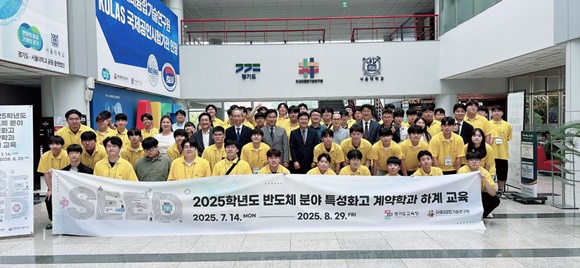 °æ±âµµ ¼ö¿ø Â÷¼¼´ëÀ¶ÇÕ±â¼ú¿¬±¸¿ø °´çÀÌ 29ÀÏ È°±âÂù ÃàÇÏ ºÐÀ§±â·Î °¡µæ á´Ù. °æ±âµµ±³À°Ã»(±³À°°¨ ÀÓÅÂÈñ)ÀÌ ÁÖÃÖÇÑ ¡®¹ÝµµÃ¼ °è¾àÇаú¡¯ 3Çгâ Çлý 63¸íÀÇ ¼ö·á½Ä ÇöÀåÀÌ´Ù. ÇлýµéÀº Áö³ 3³â°£ 360½Ã°£ÀÇ ½Ç½À°ú ±³À°À» ¸¶Ä¡°í, ÷´Ü ¹ÝµµÃ¼ »ê¾÷ ÇöÀå¿¡ Áï½Ã ÅõÀ﵃ ½Ç¹«Çü ÀÎÀç·Î °Åµì³µ´Ù.