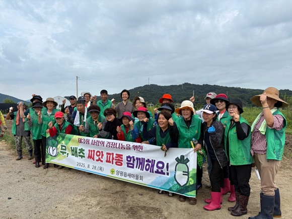 ¾çÆò±º ¾çÆòÀ¾ »õ¸¶À»ÁöµµÀÚÇùÀÇȸ(ÇùÀÇȸÀå ±èÁÖö)¿Í »õ¸¶À»ºÎ³àȸ(ºÎ³àȸÀå °¹Ì¼ö)´Â Áö³ 28ÀÏ ¾çÆòÀ¾ ´öÆò¸® ÀÏ¿ø¿¡¼ ¡®»ç¶ûÀÇ ±èÀå ³ª´®¡¯À» À§ÇÑ ¹èÃß ¸ðÁ¾ ½É±â Çà»ç¸¦ °³ÃÖÇß´Ù.