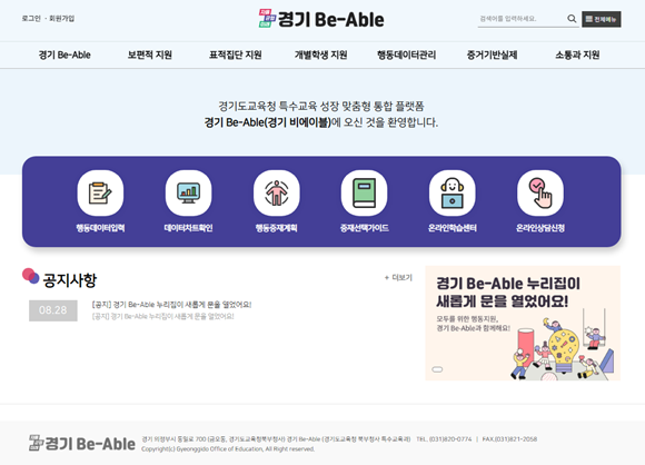 °æ±âµµ±³À°Ã»(±³À°°¨ ÀÓÅÂÈñ)Àº 9¿ù 1ÀϺÎÅÍ Æ¯¼ö±³À° ´ë»ó ÇлýµéÀÇ Çൿ ¹®Á¦ ¿¹¹æ°ú Áö¿øÀ» À§ÇØ ¿Â¶óÀÎ Ç÷§Æû ¡®°æ±â ºñ¿¡À̺í(Be-Able)¡¯À» Á¤½ÄÀ¸·Î °³ÅëÇß´Ù.