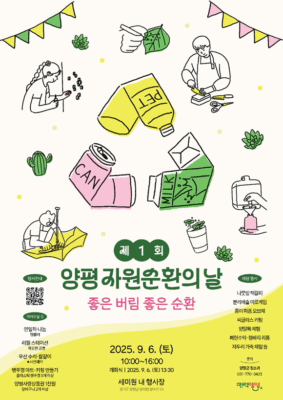 ¶ÇÇÑ 13½Ã 30ºÐ¿¡ ÁøÇàµÇ´Â ±â³ä½Ä¿¡¼´Â ÀÚ¿ø¼øÈ¯ À¯°øÀÚ Ç¥Ã¢°ú ÇÔ²² ±â³ä»ç, ÀÚ¿ø¼øÈ¯ ½Çõ ¼±¾ð ³¶µ¶, ÆäÆ®º´ ¶Ñ²±À» Ȱ¿ëÇÑ ÀçȰ¿ë ¿¹¼ú °ø¿¬ÀÌ ¿¸± ¿¹Á¤À̸ç, ¿Ï¼ºµÈ ÀÛǰÀº ¾çÆòÀÚ¿ø¼øÈ¯¼¾ÅÍ È«º¸°ü¿¡ Àü½ÃµÈ´Ù.