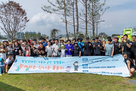 Çà»ç¿¡´Â 100¿© ¸íÀÇ Àå¾ÖÀÎ °¡Á·°ú ÇÔ²² Áö¿ªÀÇ 55»ç´Ü ÀÌõ´ë´ë ¹× 7±âµ¿±º´Ü ±º À庴 20¿© ¸íÀÌ Âü¿©ÇØ ¿©¸§ÀÇ ¹«´õÀ§¸¦ Áñ°å´Ù. ƯÈ÷ ±º À庴µéÀÇ ÀÚ¿øºÀ»ç Ȱµ¿Àº ¹ß´ÞÀå¾Ö Àڳฦ µ¹º¸´Â °¡Á·µé¿¡°Ô È޽İú ÀçÃæÀüÀÇ ½Ã°£À» Á¦°øÇϸç, ´Ü¼ø ¹°³îÀ̸¦ ³Ñ¾î °¡Á·µéÀÇ »çȸ Âü¿©¸¦ Áö¿øÇÏ´Â ÀÇ¹Ì ÀÖ´Â ÀÚ¸®·Î ¸¶·ÃµÆ´Ù.