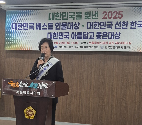 °æ±âµµÀÇȸ °Ç¼³±³ÅëÀ§¿øÈ¸ ¹Ú¸í¼÷ ÀÇ¿ø(±¹¹ÎÀÇÈû, ¾çÆò1)ÀÌ 22ÀÏ(¿ù) ¼­¿ï½ÃÀÇȸ º°°ü¿¡¼­ ¿­¸° ¡®2025 ´ëÇѹα¹ º£½ºÆ® Àι°´ë»ó¡¯ ½Ã»ó½Ä¿¡¼­ ±¤¿ªÀÇÁ¤´ë»óÀ» ¼ö»óÇÏ´Â ¿µ¿¹¸¦ ¾È¾Ò´Ù.