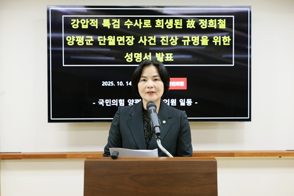 ¾çÆò±ºÀÇȸ ±¹¹ÎÀÇÈû ÀÇ¿øµéÀÌ 14ÀÏ, °í(ͺ) Á¤Èñö ´Ü¿ù¸éÀåÀÇ ºñ±ØÀûÀÎ Á×À½À» µÑ·¯½Ñ Áø»ó ±Ô¸íÀ» °·ÂÈ÷ Ã˱¸ÇÏ¸ç ¼º¸í¼¸¦ ¹ßÇ¥Çß´Ù.
