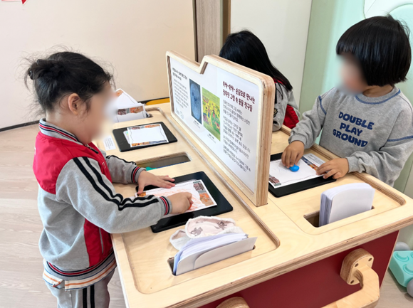 Àü½Ã °ø°£¿¡ µé¾î¼¸é ¾ÆÀ̵éÀº Àå¿íÁø ȹéÀÇ µû¶æÇÑ ±×¸² ¼ÓÀ¸·Î ÀÚ¿¬½º·´°Ô °É¾î µé¾î°£´Ù. ¼Õ¹Ù´Ú¸¸ ÇÑ Á¾À̸¦ µé°í, ´«À» ¹Ý¦ÀÌ¸ç ´Ù¾çÇÑ Áú°¨ÀÇ Ç¥¸éÀ» ¹®Áö¸¥´Ù. ¡°´ßÀÌ ³ª¿Ô¾î¿ä!¡± ¡°°¾ÆÁö°¡ º¸¿©¿ä!¡± ¾ÆÀ̵éÀÇ ¸ñ¼Ò¸®¿£ ¿¹¼úÀÇ ¹ß°ßÀÌ ±êµé¾î ÀÖ´Ù.