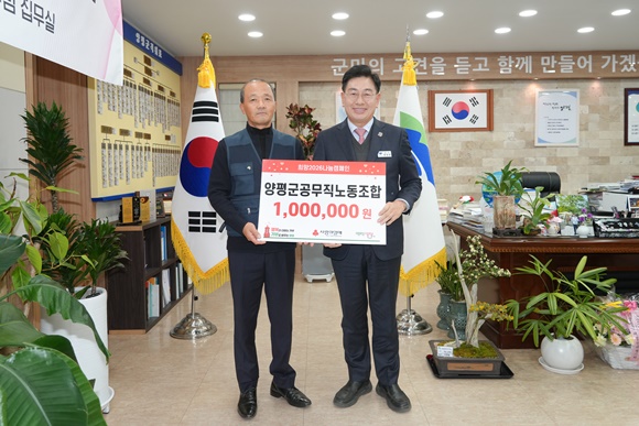 ÃÊ°Ü¿ï ¹Ù¶÷ÀÌ ½º»êÇÏ°Ô ºÎ´Â Áö³ 1ÀÏ, ¾çÆò±ºÃ» 2Ãþ ±º¼ö½Ç¿¡´Â ÀÛÀº ¿Â±â°¡ °¡µæÇß´Ù. ¾çÆò±º°ø¹«Á÷³ëµ¿Á¶ÇÕ(À§¿øÀå À̹®½Ä)ÀÌ ¡®Èñ¸Á2026 ³ª´®Ä·ÆäÀÎ »ç¶ûÀÇ ¿¬Åº ¸ðÀ¸±â ¿îµ¿¡¯À» À§ÇØ ¼º±Ý 100¸¸ ¿øÀ» Àü´ÞÇ߱⠶§¹®ÀÌ´Ù.