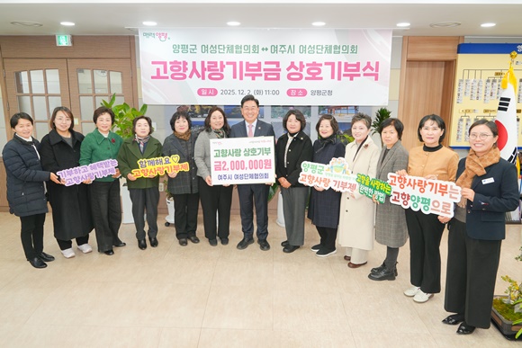 À̳¯ ¿©Áֽà ¿©¼º´ÜüÇùÀÇȸ´Â ¾çÆò±º¿¡ °íÇâ»ç¶û±âºÎ±Ý 200¸¸ ¿øÀ» Àü´ÞÇϸç Áö¿ª»çȸ ¹ßÀüÀ» À§ÇÑ µû¶æÇÑ ¸¶À½À» ´õÇß´Ù.