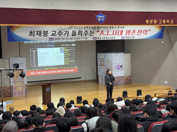 ¾çÆò±º ¿ë¹®µµ¼°üÀÌ ÀΰøÁö´É(AI) ½Ã´ëÀÇ ÇÙ½É Å°¿öµå¸¦ Á¦½ÃÇϸç Áö¿ª û¼Ò³âµéÀÇ ¹Ì·¡ ¼³°è¿¡ ³ªÄ§¹ÝÀ» ¼±¹°Çß´Ù. Áö³ 10ÀÏ, ¿ë¹®°íµîÇб³ ´ë°´ç¿¡¼´Â ÃÖÀçºØ ¼º±Õ°ü´ë ±â°è°øÇкΠ±³¼ö¸¦ ÃÊûÇÑ ¡®ÀΰøÁö´É(AI) ½Ã´ë »ýÁ¸Àü·«¡¯ ã¾Æ°¡´Â ºÏÅäÅ© ÄܼƮ°¡ ¶ß°Å¿î ¿±â ¼Ó¿¡ ¼ºÈ²¸®¿¡ °³ÃֵƴÙ.