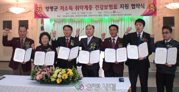 ±¹¹Î°Ç°º¸Çè°ø´Ü ¾çÆòÁö»ç(Áö»çÀå ½Åµ¿È¿)¿Í ¾çÆò·ÎŸ¸®(¿ÀÀÎÈ£ ȸÀå), ¿ë¹®·ÎŸ¸®(±èÀοµ ȸÀå), ¾çÆò¶óÀ̿½º(±è°æ½Ä ȸÀå), ¾çÆòÀ¾ÀÚÀ²¹æ¹ü¼øÂû´ë(¿ÀÀÎÈ£ ´ëÀå), ¾çÆòJCI(Àå¿ëÁÖ È¸Àå)µî 5°³ ´Üü´Â 16ÀÏ ¿©¼ºÈ¸°ü 4Ãþ ´Ù¸ñÀû½Ç¿¡¼ Àú¼Òµæ¡¤Ãë¾à°èÃþÀÇ °Ç°º¸Çè·á Áö¿ø Çù¾à½ÄÀ» ü°áÇÏ°í ¸Å³â 500¸¸¿øÀ» Áö¿øÇϱâ·Î Çß´Ù.
