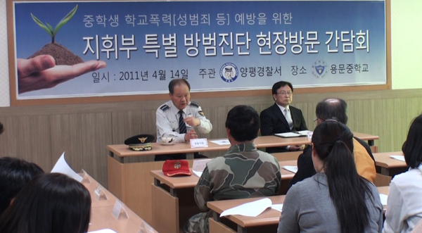 À̳¯ °£´ãȸ´Â Àú¿¬·ÉÈ­¿¡ µû¸¥ ÁßÇлý Çб³ Æø·ÂÀÇ ½É°¢¼ºÀ» Á¦°íÇÏ°í °æÂûÁöÈÖºÎÀÇ ÇöÀå ¹æ¹®À¸·Î ¾ÈÀü´ëÃ¥À» ¼ö¸³, Áö¿ª»çȸÀÇ °øµ¿ ´ëÀÀü°è ±¸Ãà ¹× ¹Î.°æ Çù·ÂÄ¡¾È °­È­·Î »çȸÀû °ø°¨´ë¸¦ Çü¼ºÇϱâ À§ÇØ ÁøÇàµÆ´Ù.