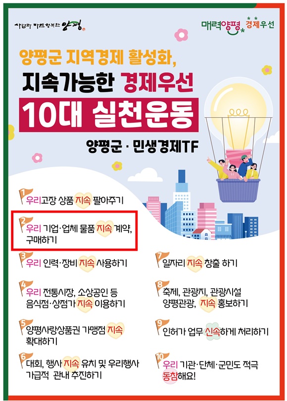 ¾çÆò±ºÀÇ ¡®Áö¿ª°æÁ¦ Ȱ¼ºÈ 10´ë ½Çõ¿îµ¿¡¯ È«º¸¹°. ¡°¿ì¸® ±â¾÷ ¹°Ç° Áö¼Ó ±¸¸ÅÇϱ⡱¶ó´Â ¹®±¸°¡ ¹«»öÇÏ´Ù´Â ÁöÀûÀÌ Àϰí ÀÖ´Ù.